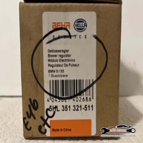 - Nhà sản xuất điện trở quạt gió điều hòa: Thông tin này không được hiển thị rõ ràng trên hình ảnh. Tuy nhiên, có thể sản phẩm được sản xuất bởi các nhà sản xuất phụ tùng ô tô uy tín như Behr Hella Service, Bosch, v.v.